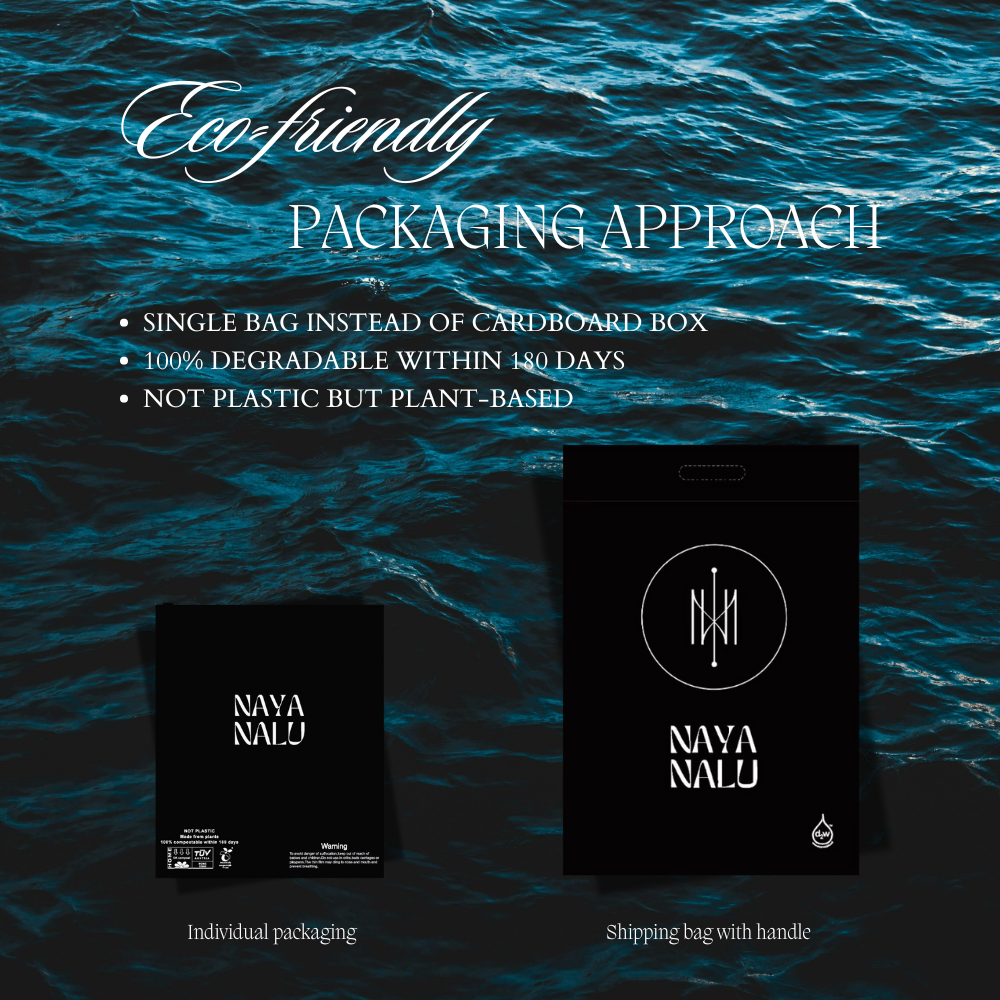 In order to minimize waste, we have opted for a single bag instead of traditional boxes. While our packaging bags may resemble traditional plastic bags, they are actually made from plant-based materials that are 100% compostable within a mere 180 days.